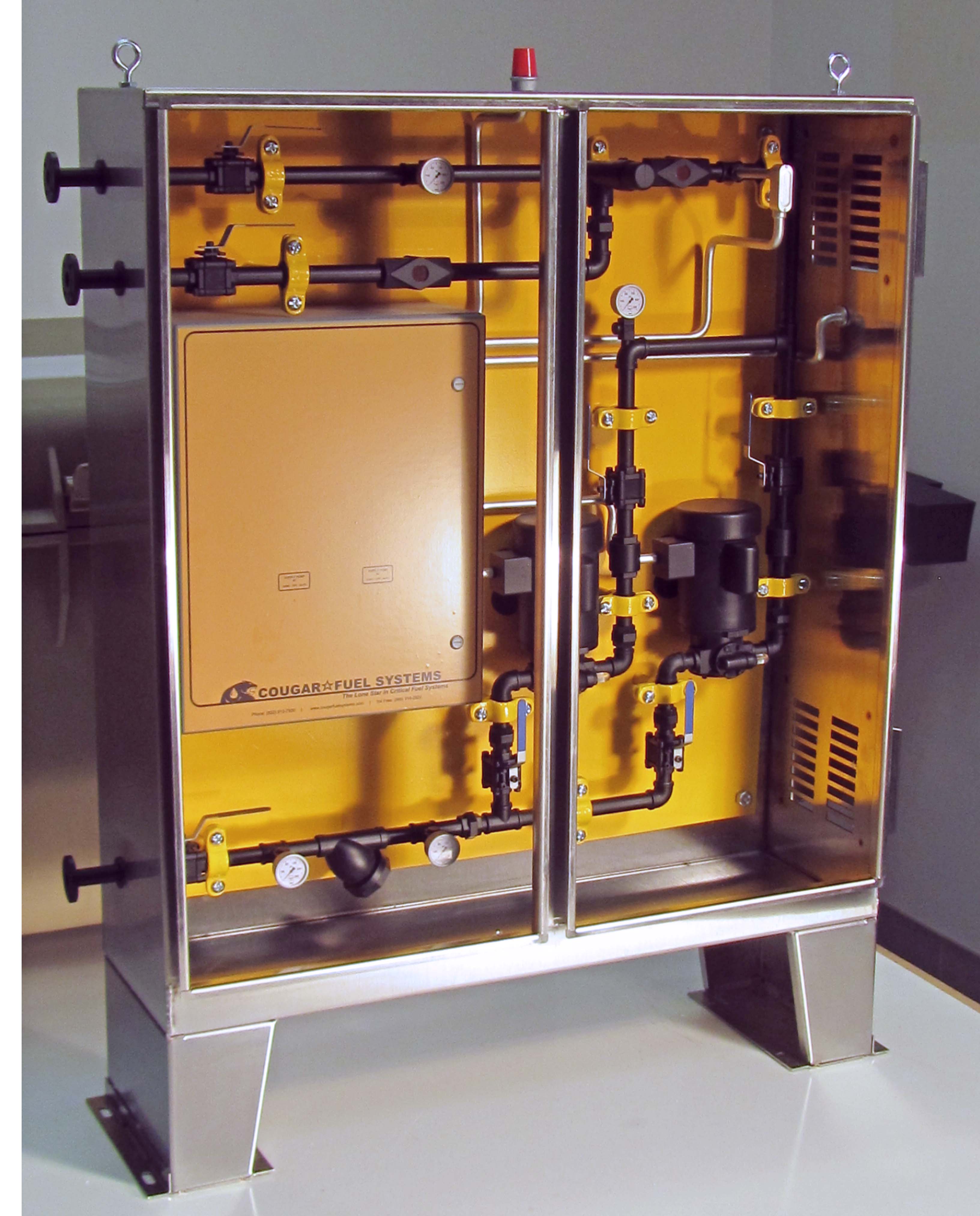 This trade show model of a Fuel Monitoring Cabinet debuted this past January at the AHR Expo at the Javits Center in NYC. It was one of three models KiwiMill built for separate clients represented at this particular trade show.