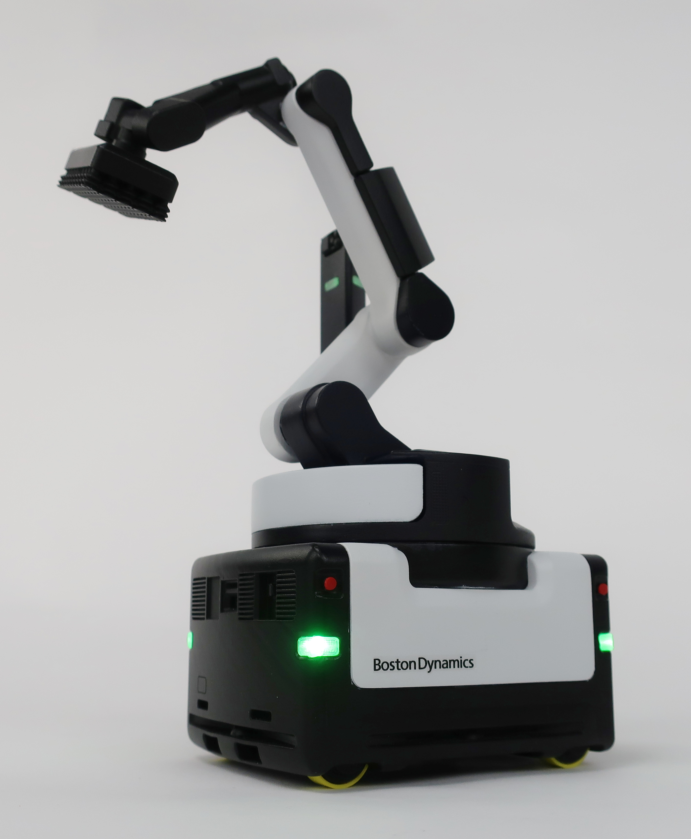 The model includes a 9V battery system that powers four lights on the base and three lights in the tower. These illuminated elements draw attention and help demonstrate the robot’s operational zones in a visually engaging way.