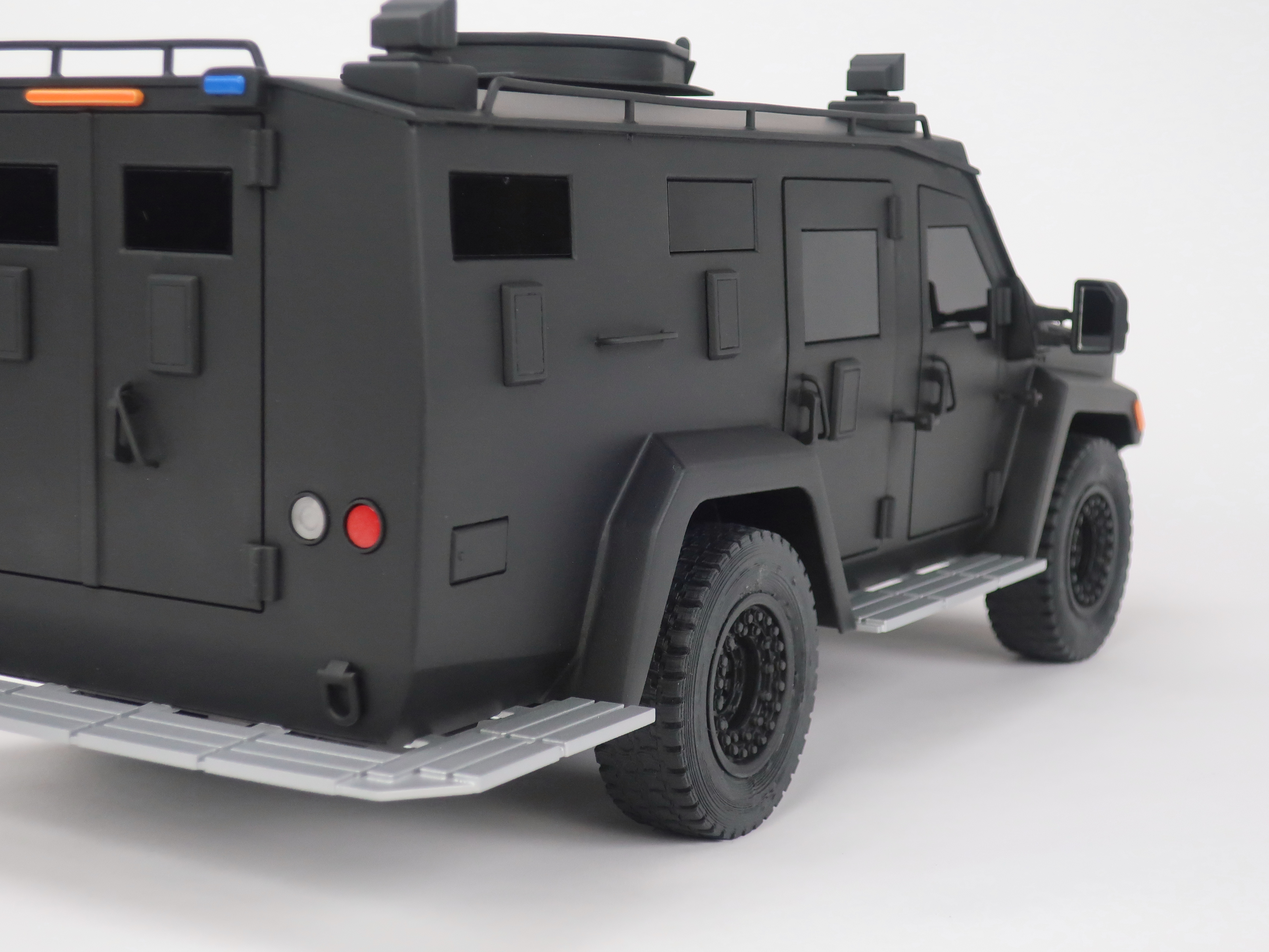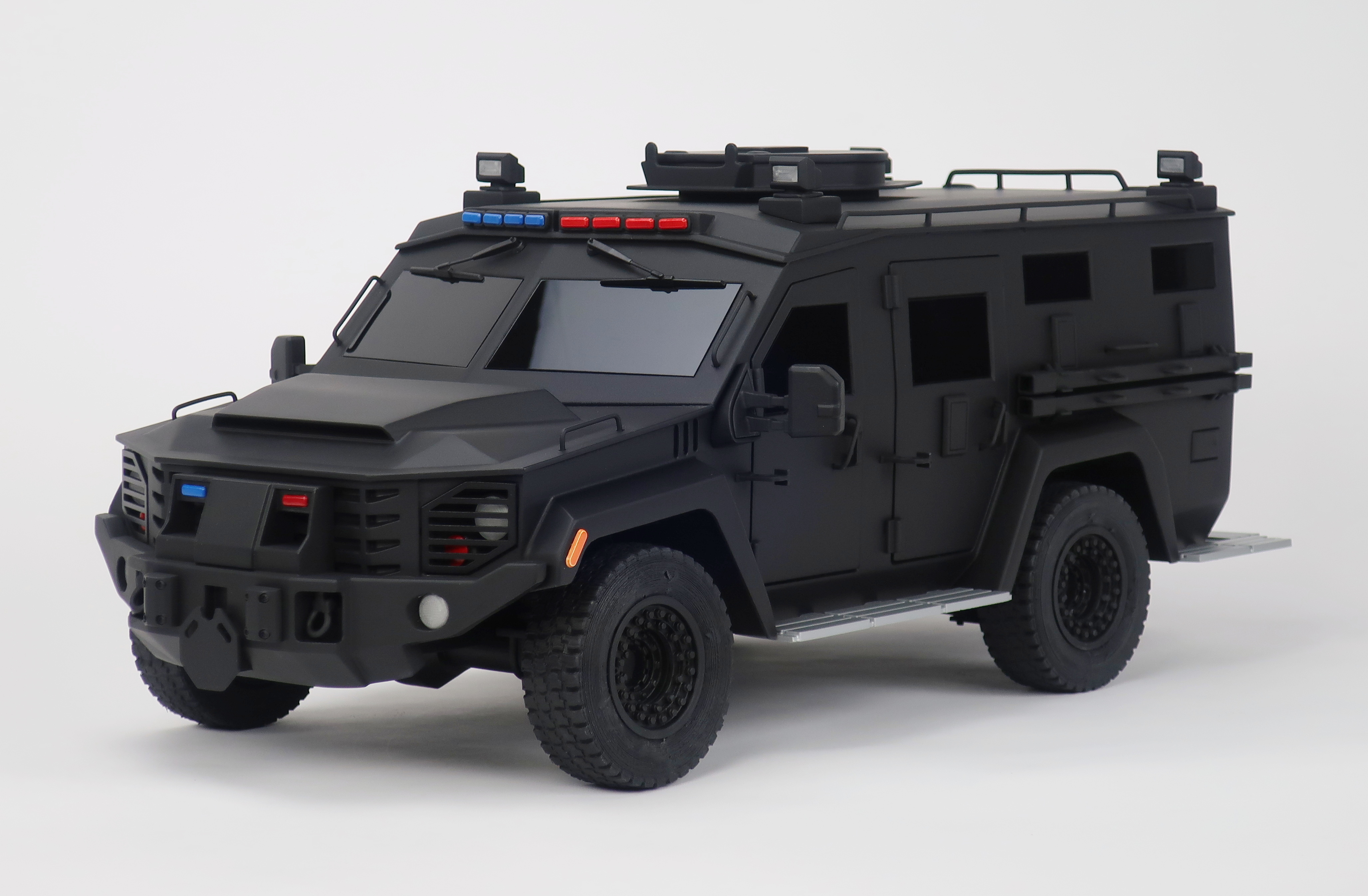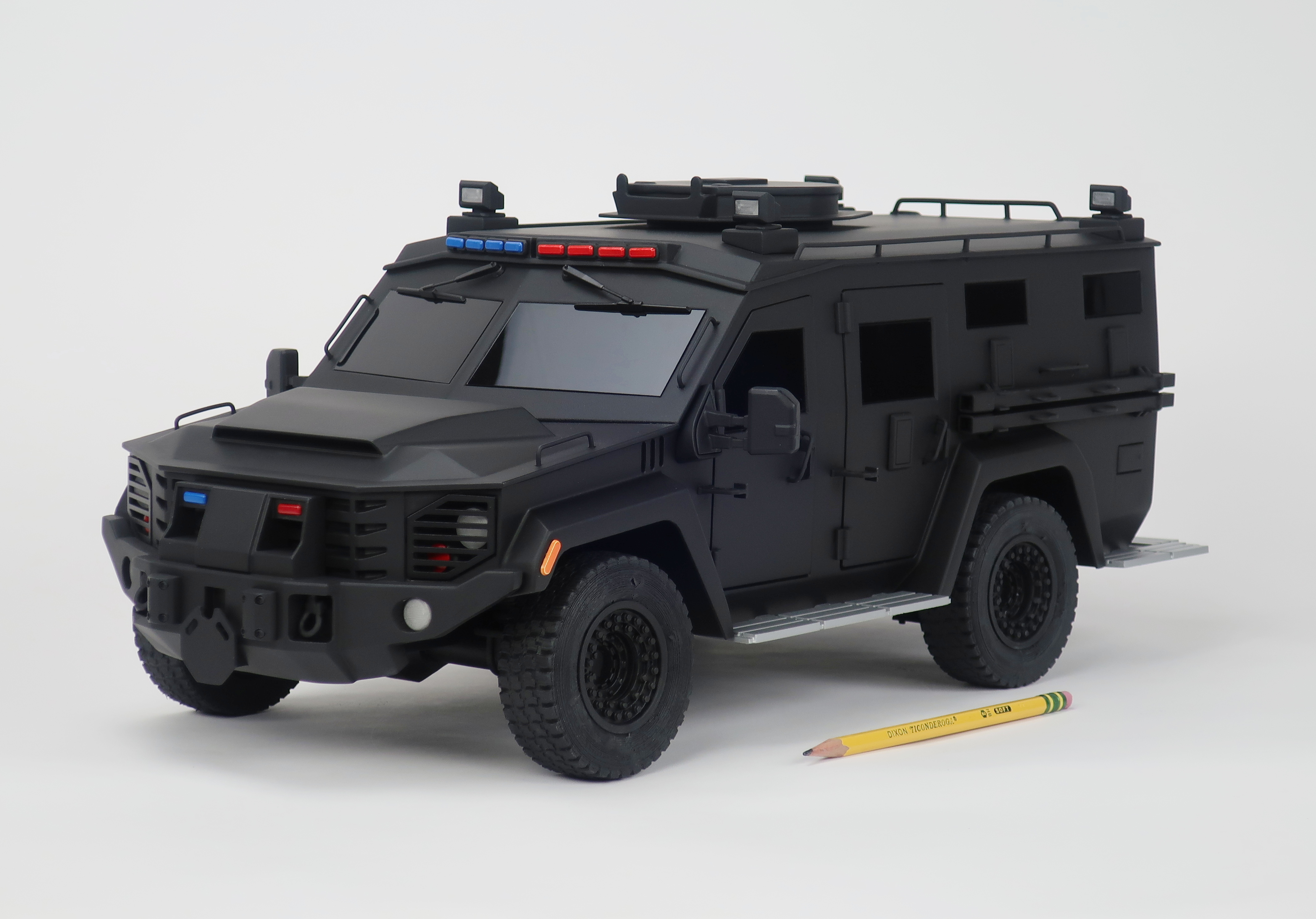 The Lenco Bearcat is known for its rugged design, law-enforcement applications, and military utility. This scale version captures those attributes, providing a clear and accessible way to showcase the vehicle’s form, function, and purpose in operational contexts.