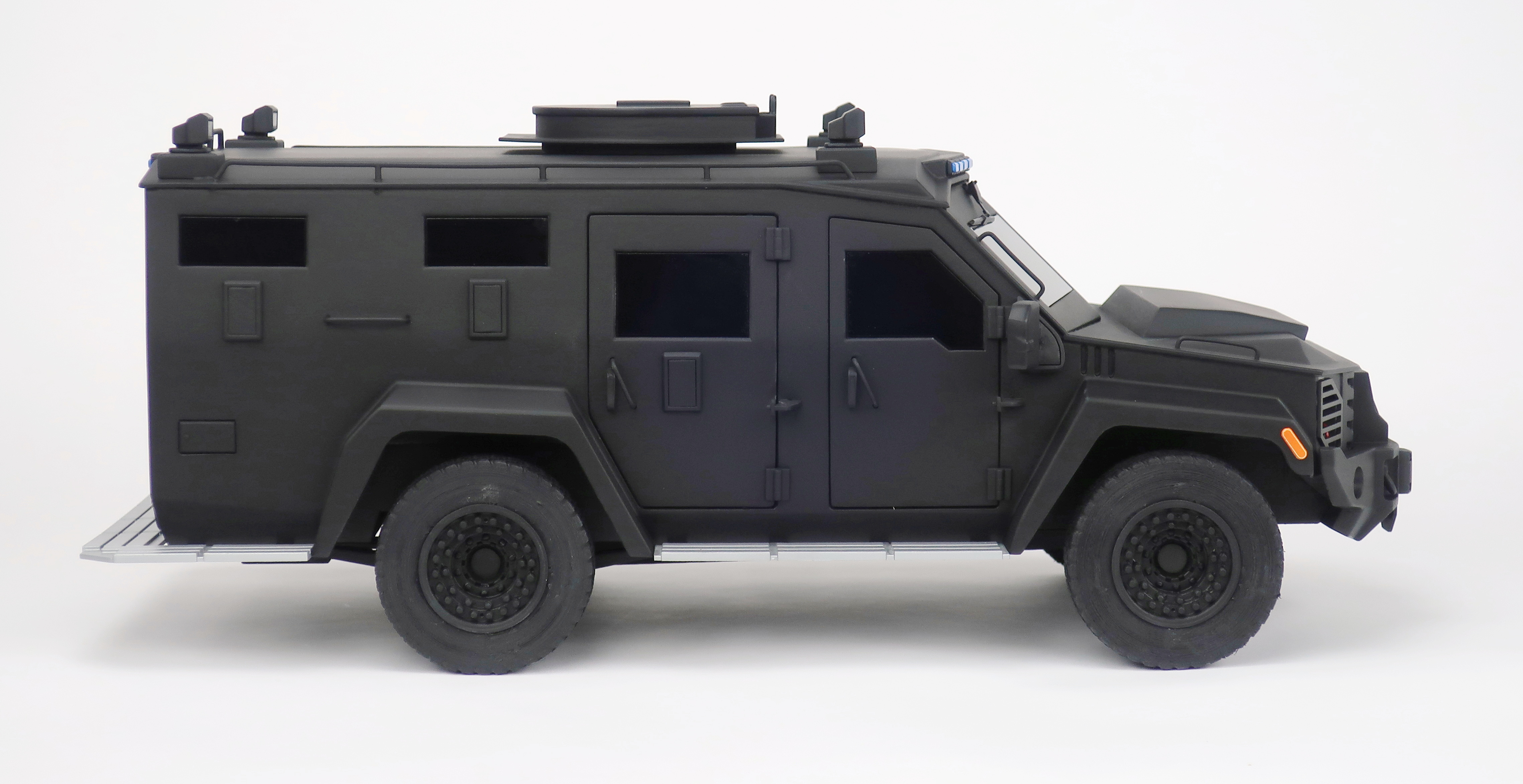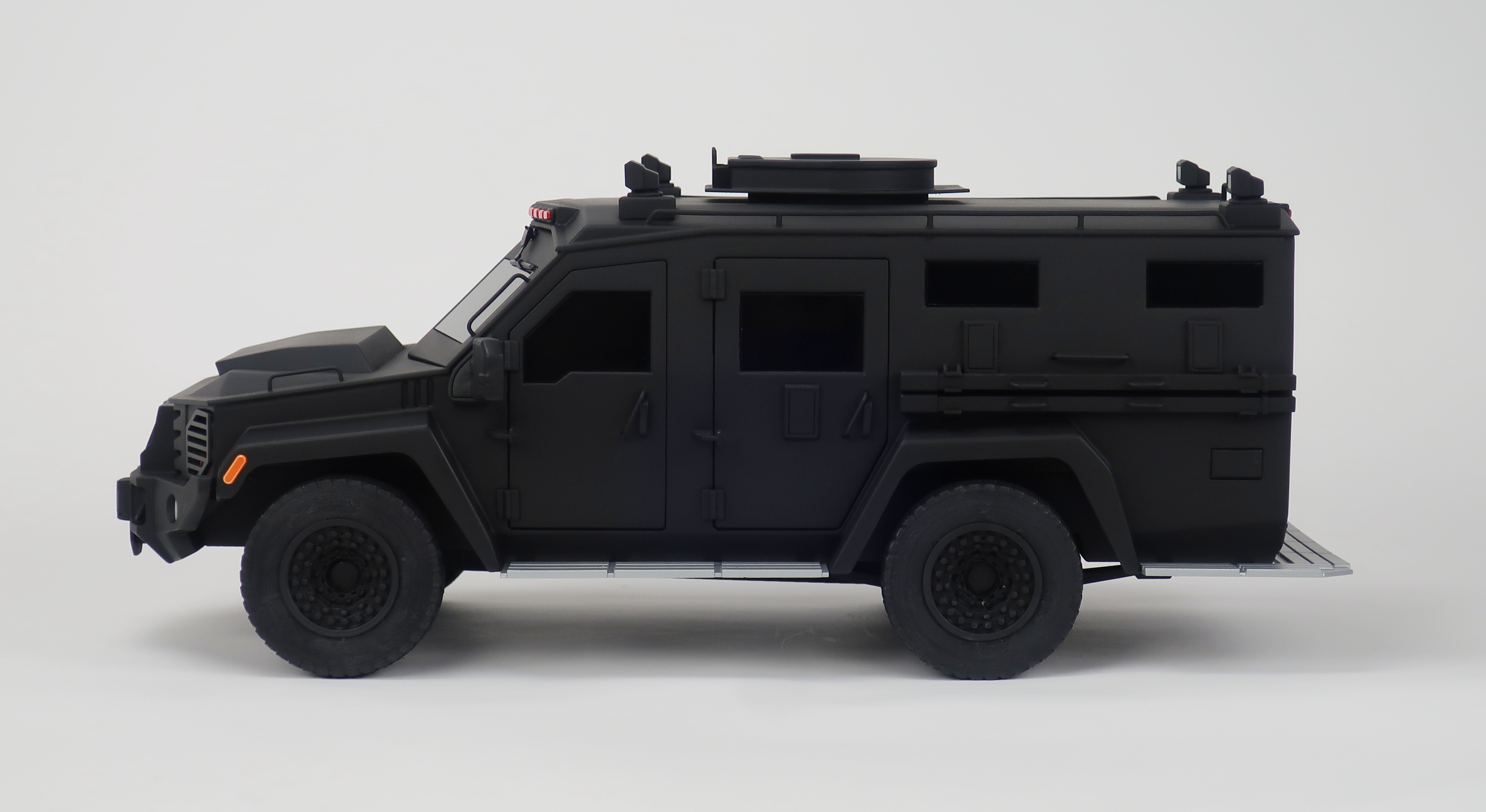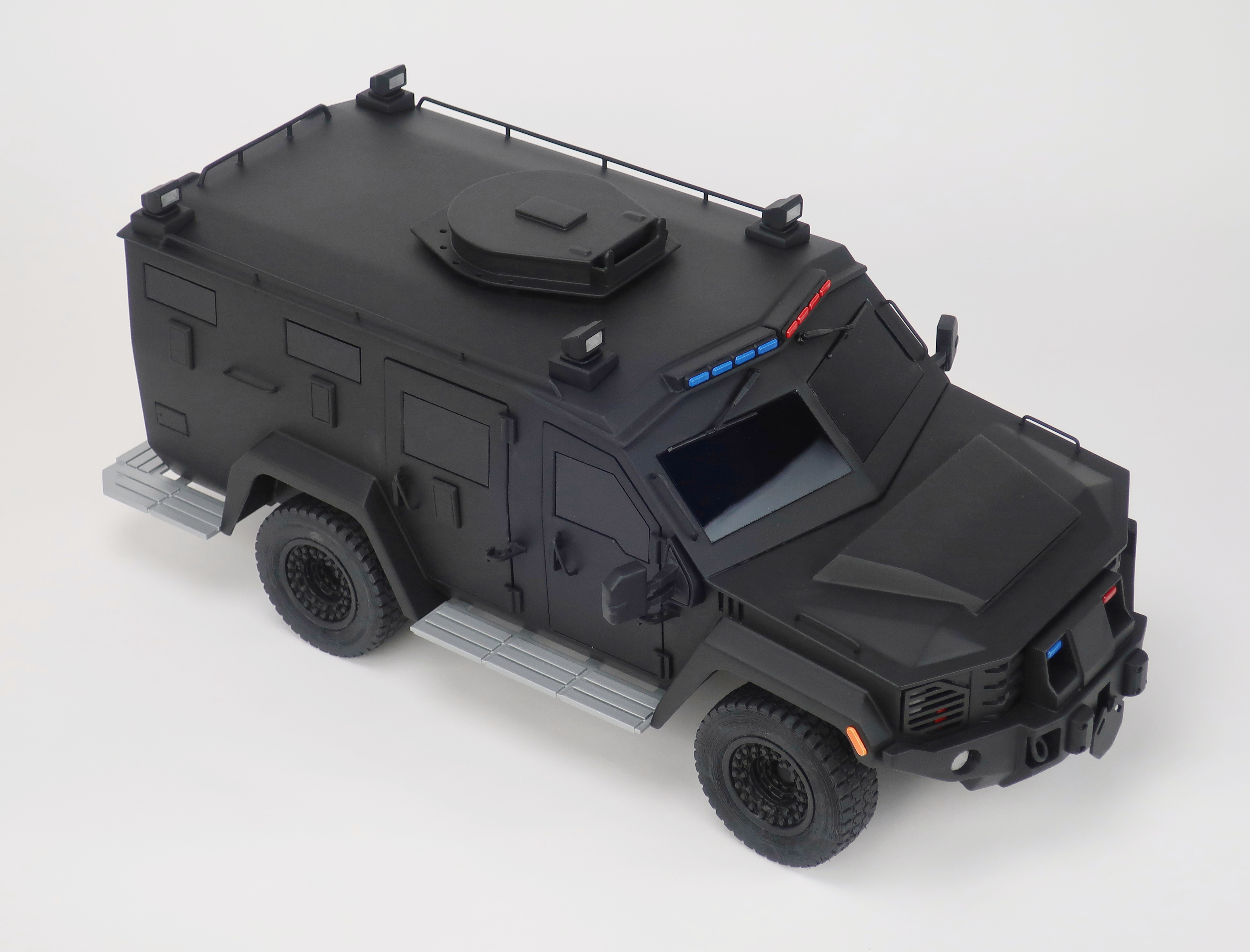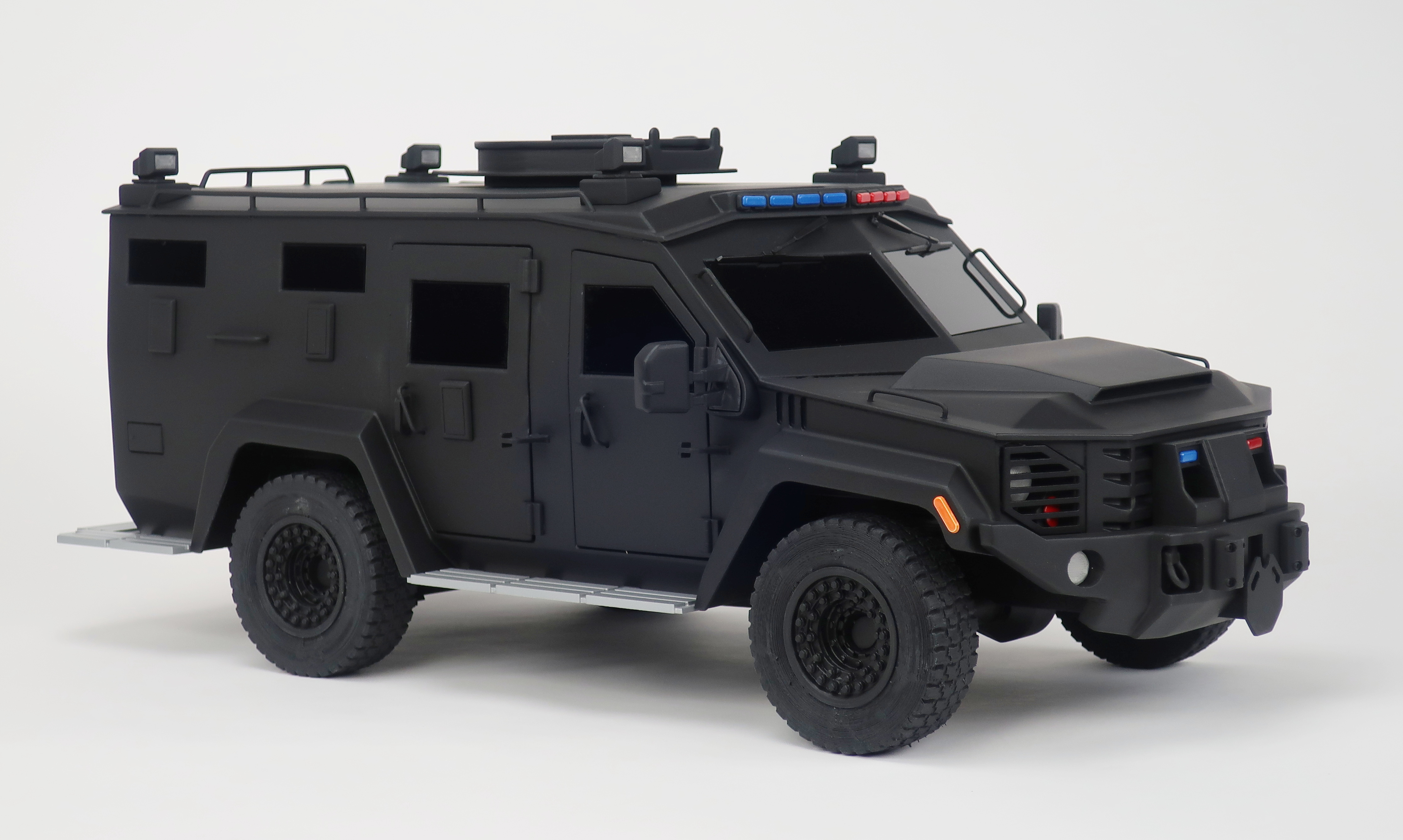 The Lenco Bearcat is known for its rugged design, law-enforcement applications, and military utility. This scale version captures those attributes, providing a clear and accessible way to showcase the vehicle’s form, function, and purpose in operational contexts.