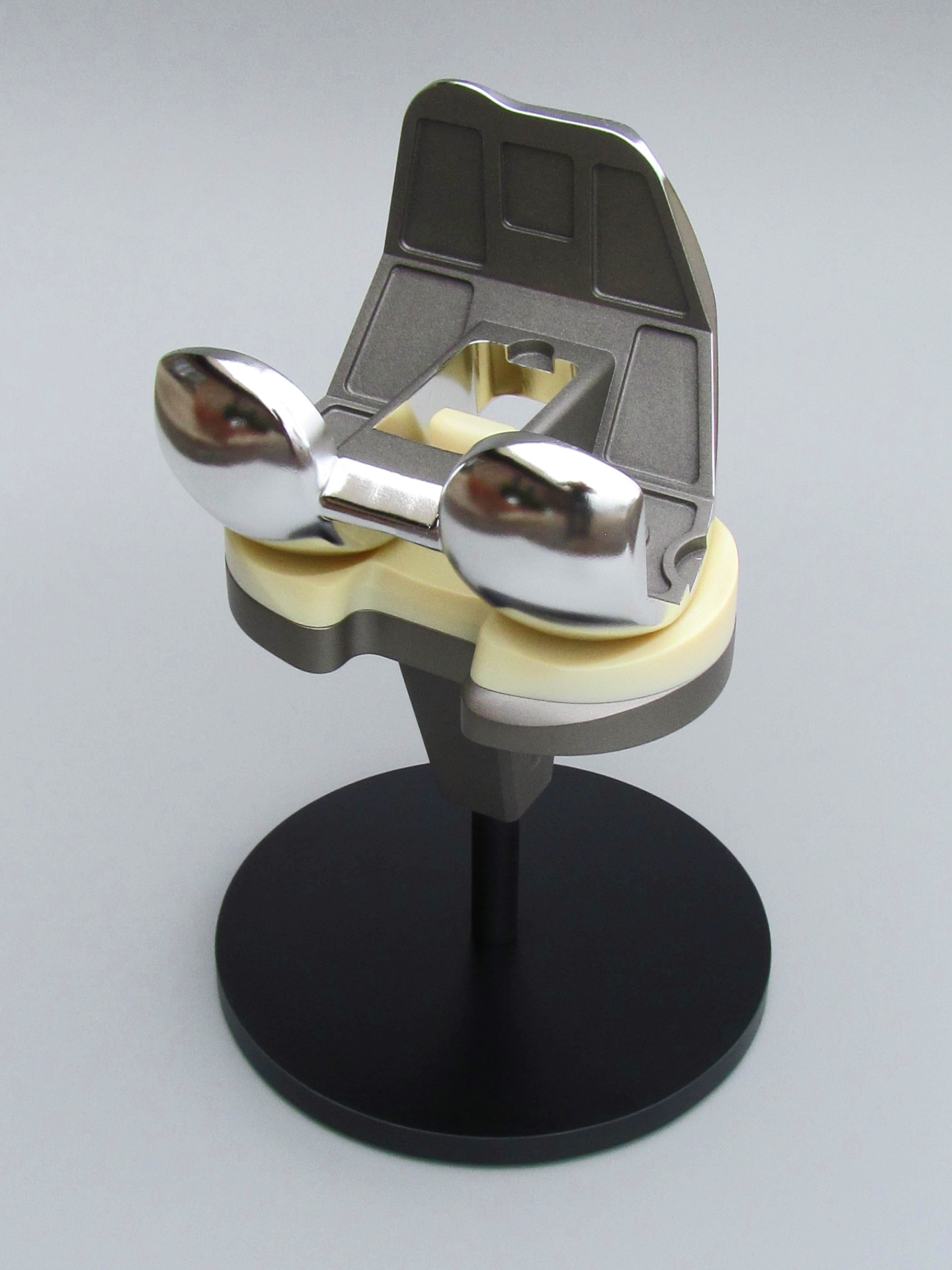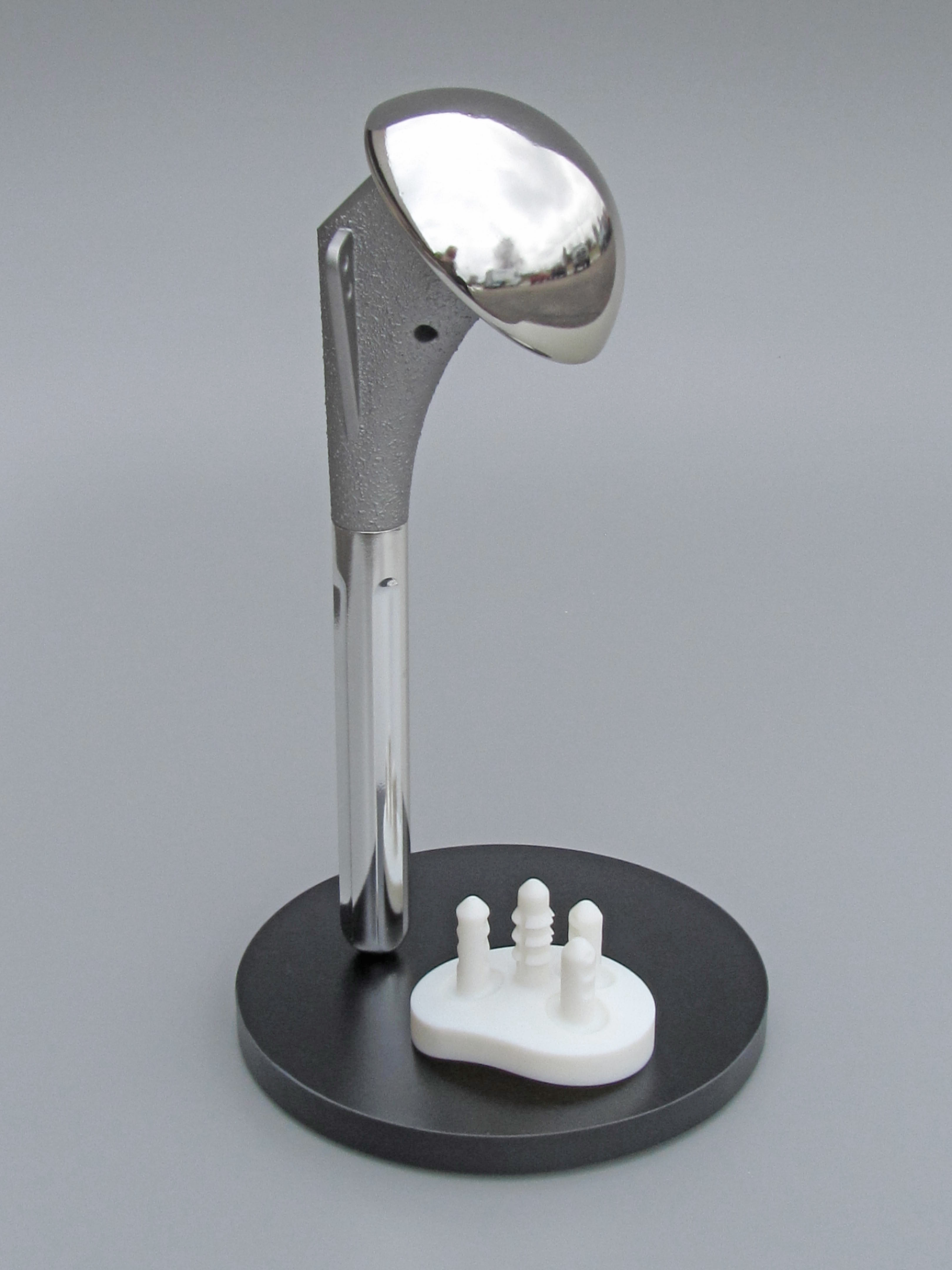 This series of 3 medical product models represent a knee, hip and shoulder implant. Each one is 3 1/2 x the size of the real implant. The enlarged size maximizes each product's unique design and features, in a human-friendly scale.