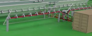 This renewable energy model, measuring 60 inches by 30 inches, was created as a complete layout to highlight the customer’s full line of renewable energy products. The large footprint of the display allowed for the integration of small, intricate details, providing a clear and visually impactful representation of a modern renewable energy ecosystem.