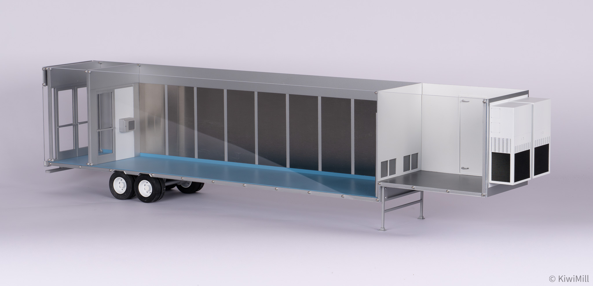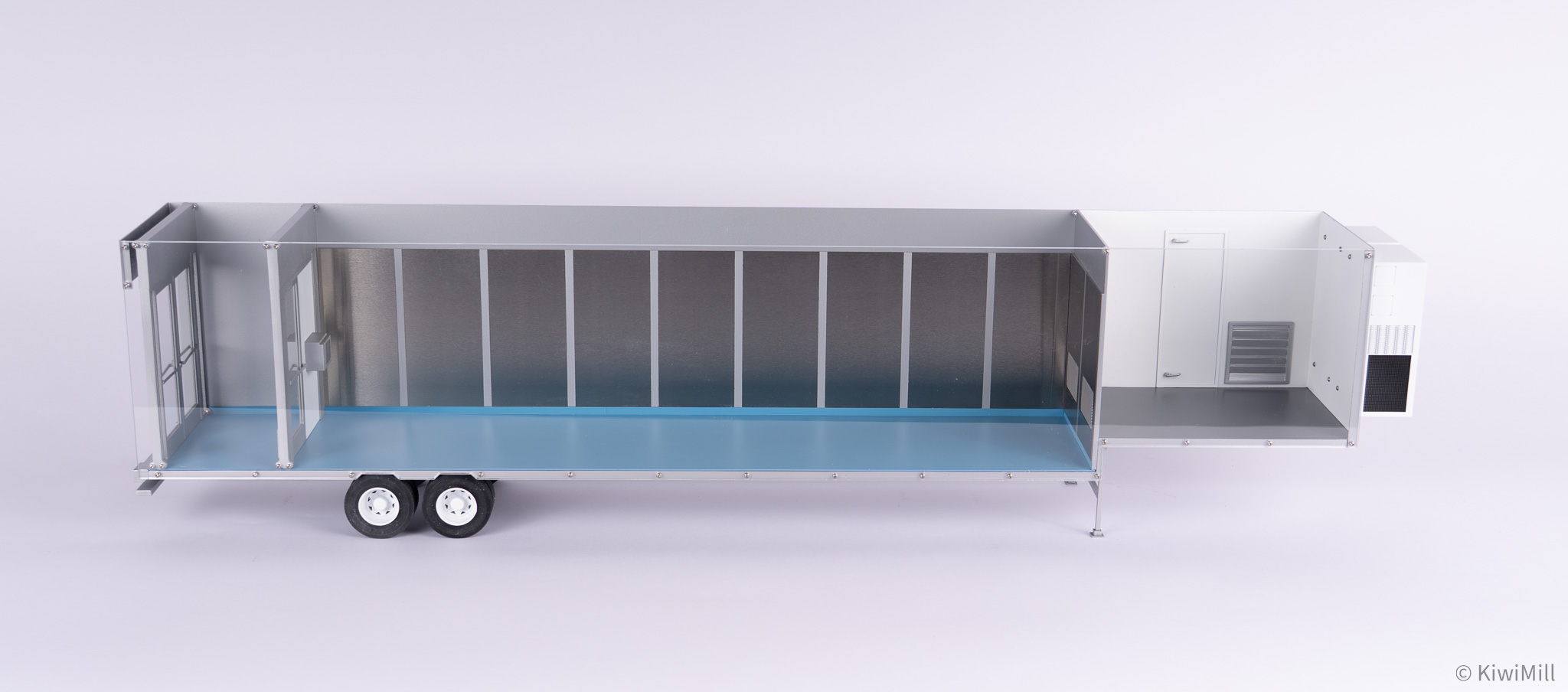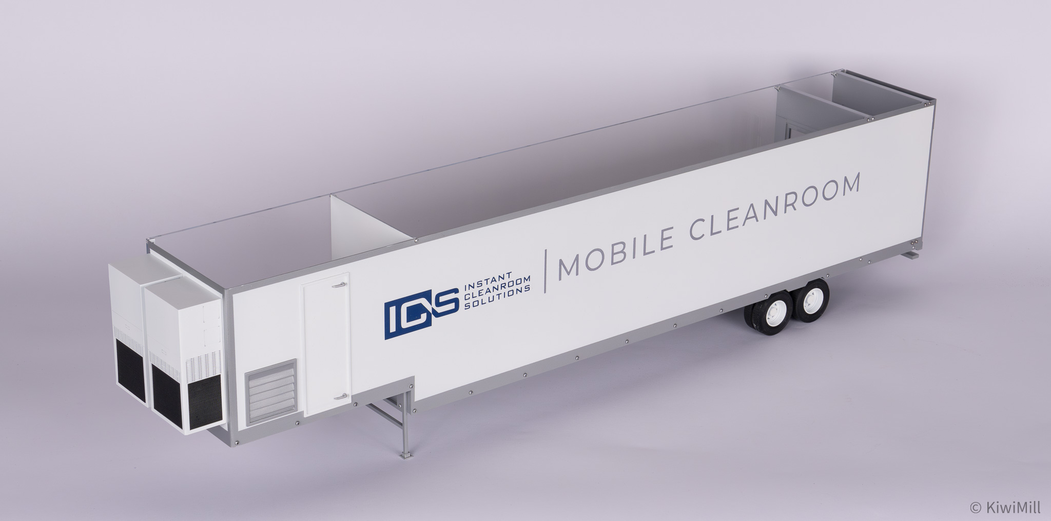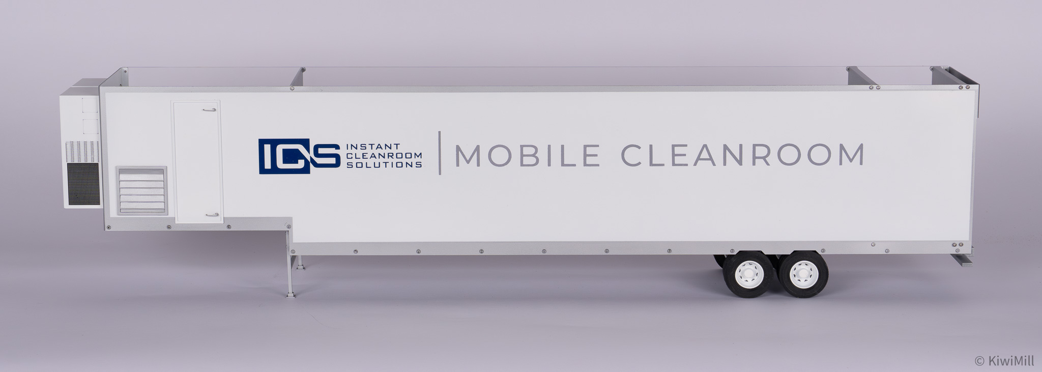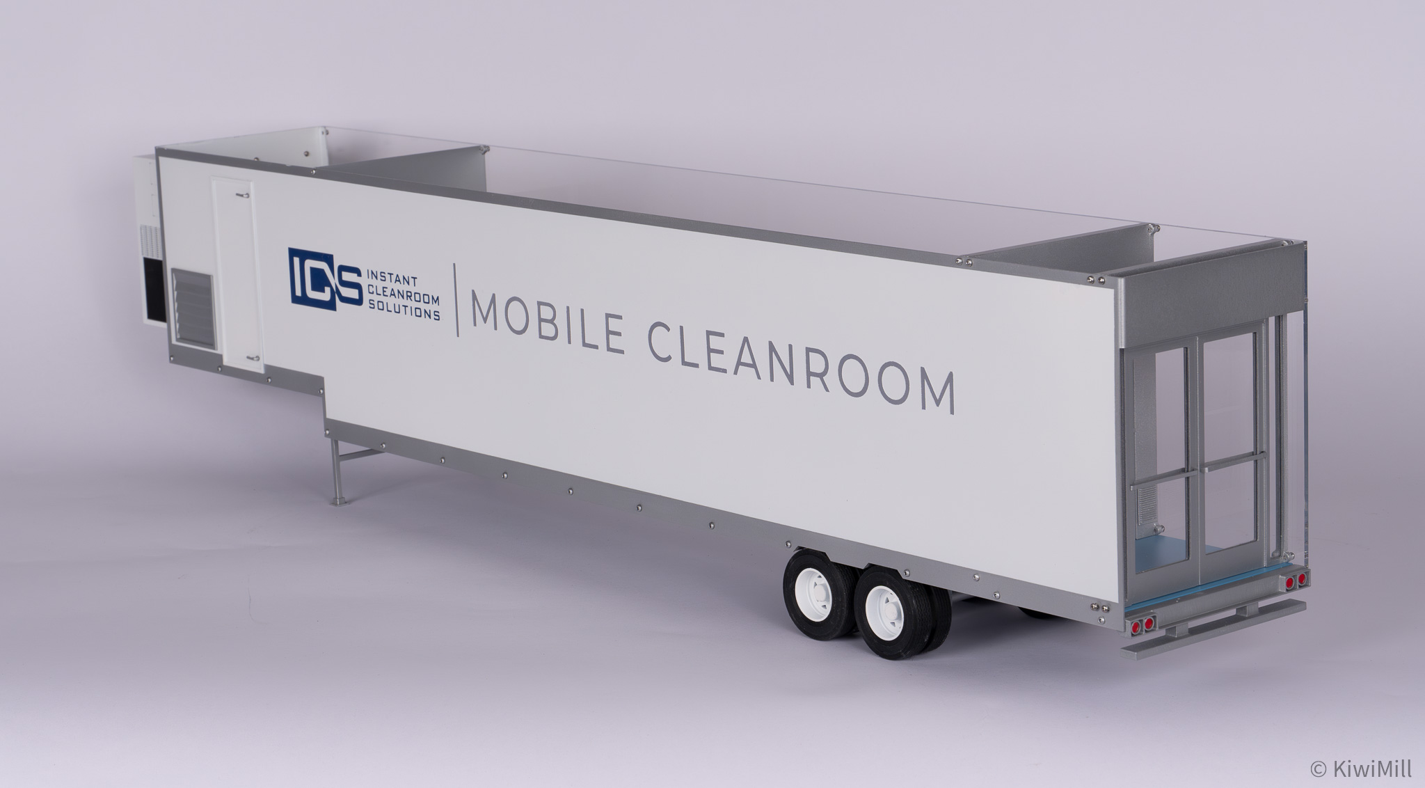 • Precision Craftsmanship: Built with the signature KiwiMill attention to detail, every component—from the trailer wheels to the internal pass-throughs—is rendered with exactness to represent a fully functional, mobile sterile environment.