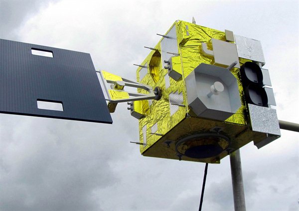 This satellite model is of the GOES-12 weather satellite. A detailed satellite model was needed to perform simulation exercises, as the real version is currently up in space.