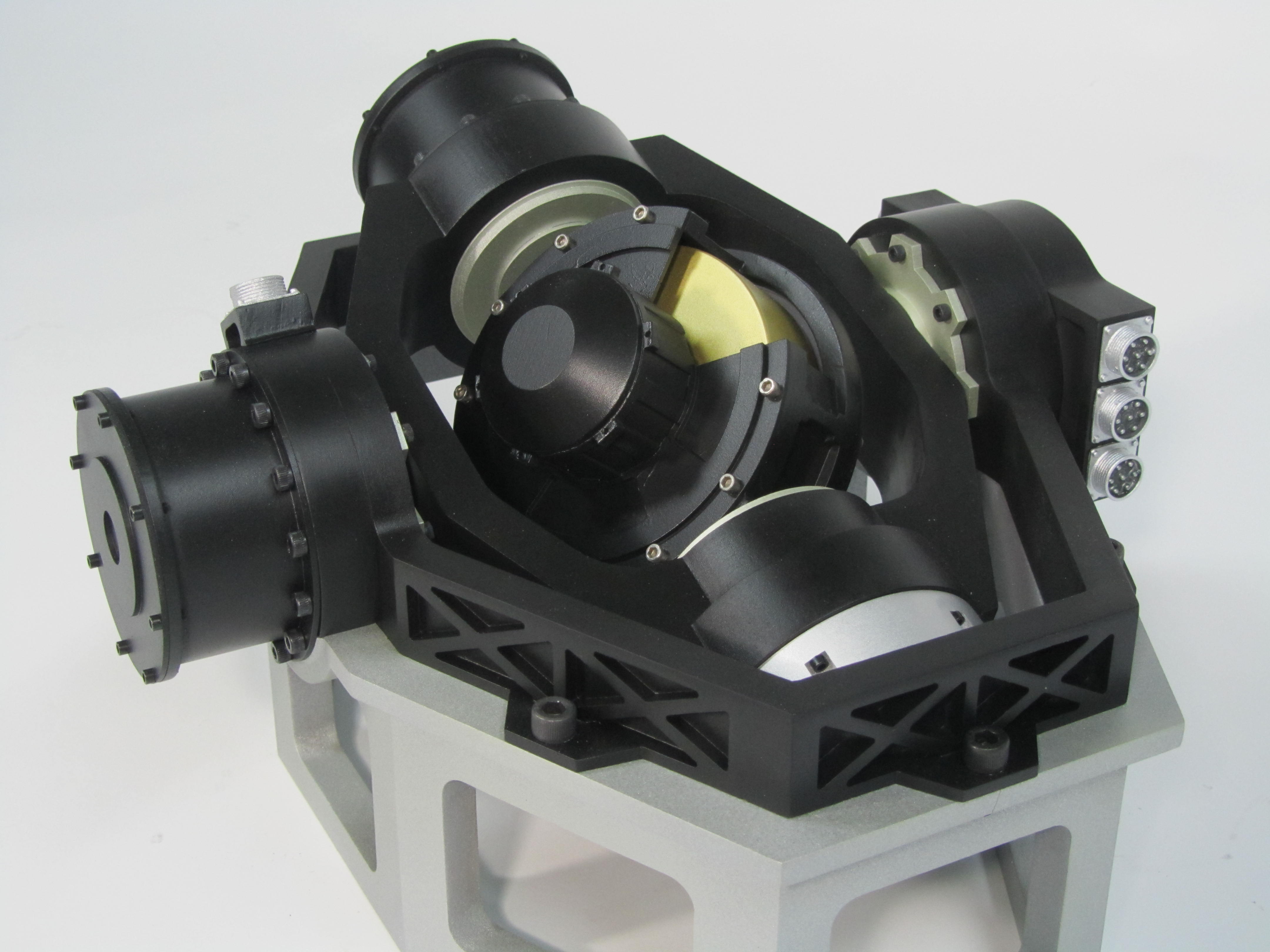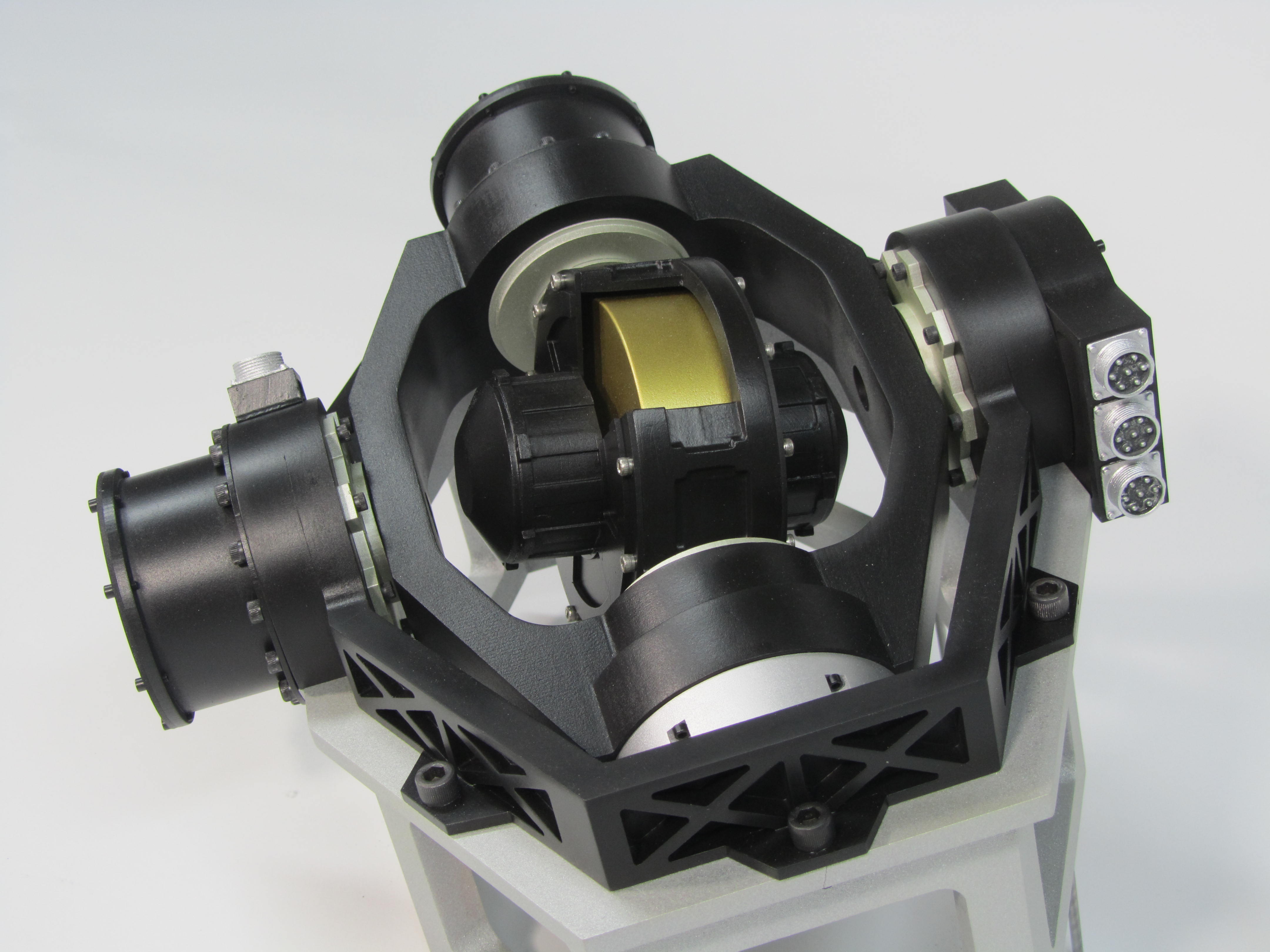 This gyroscope model was built for display purposes. Gyroscopes are placed inside satellites to aid in navigation.