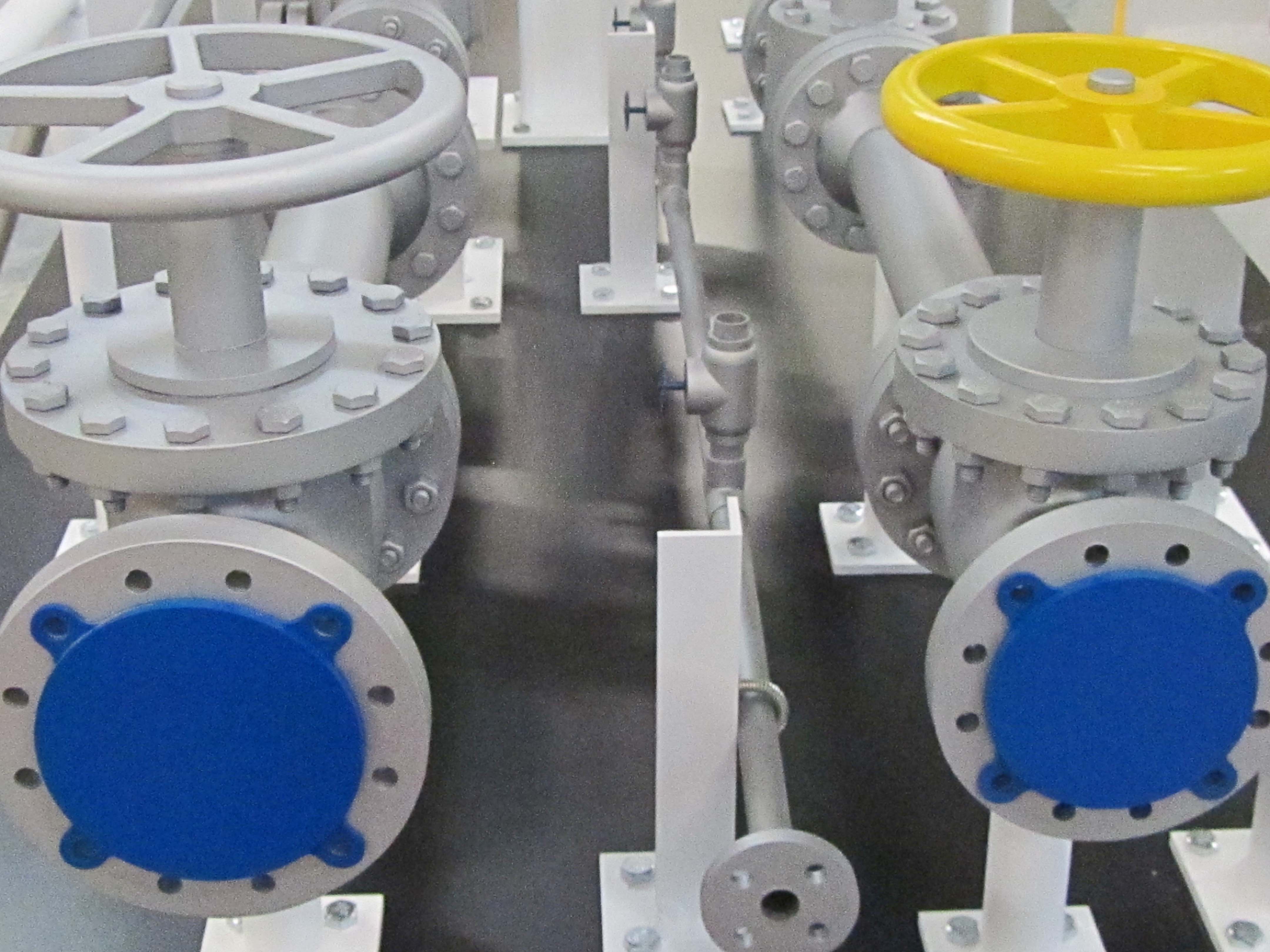 This is another industrial skid model of equipment produced by Energy Recovery. These products are used to harness fluid energy on job sites. These models are used for display in trade show booths.