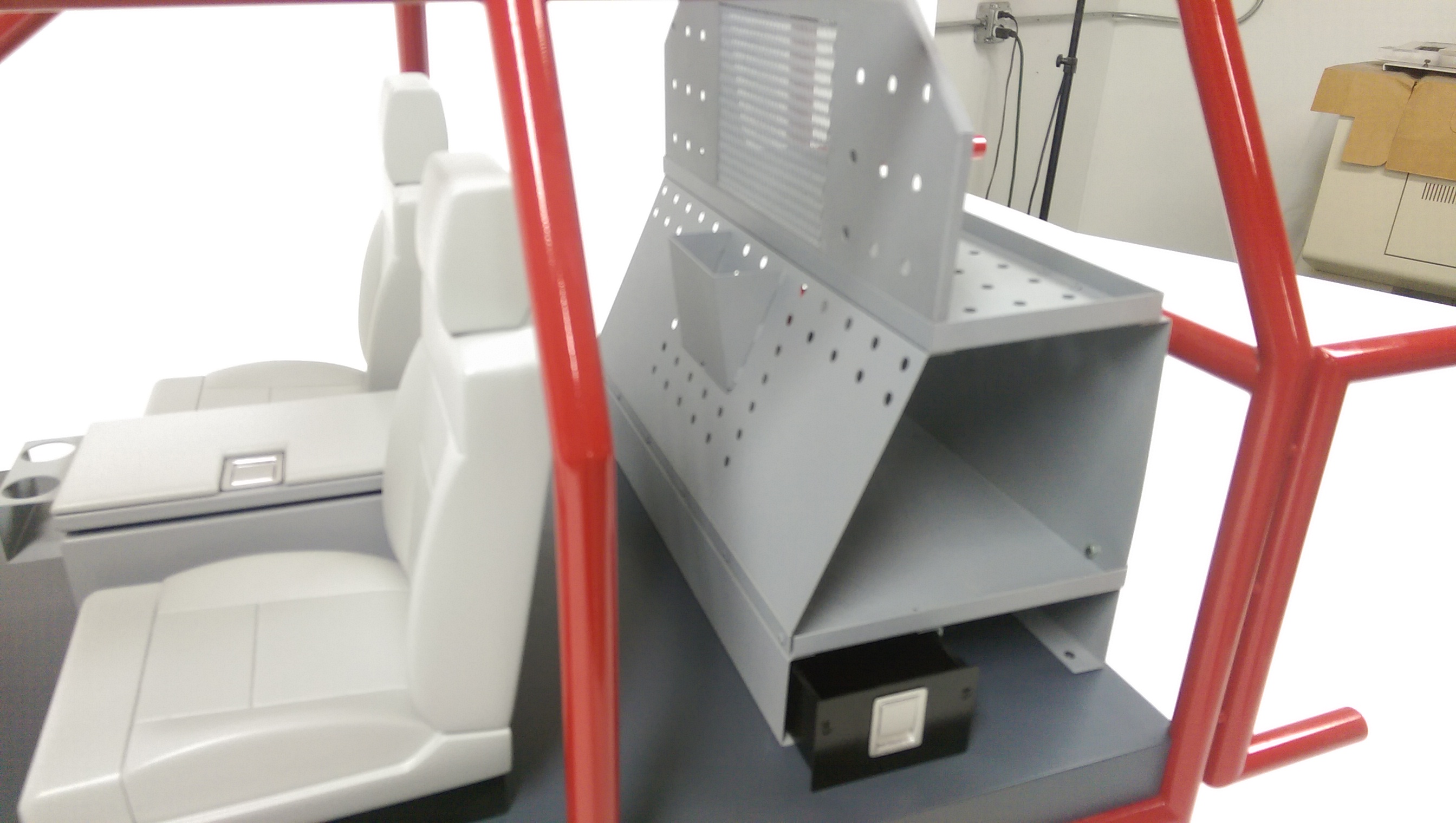KiwiMill model makers decided to create a stripped down model of a truck cab. A scale model of an actual truck was considered a distraction. Instead, the focus was on the storage products and how they fit inside a truck's interior.