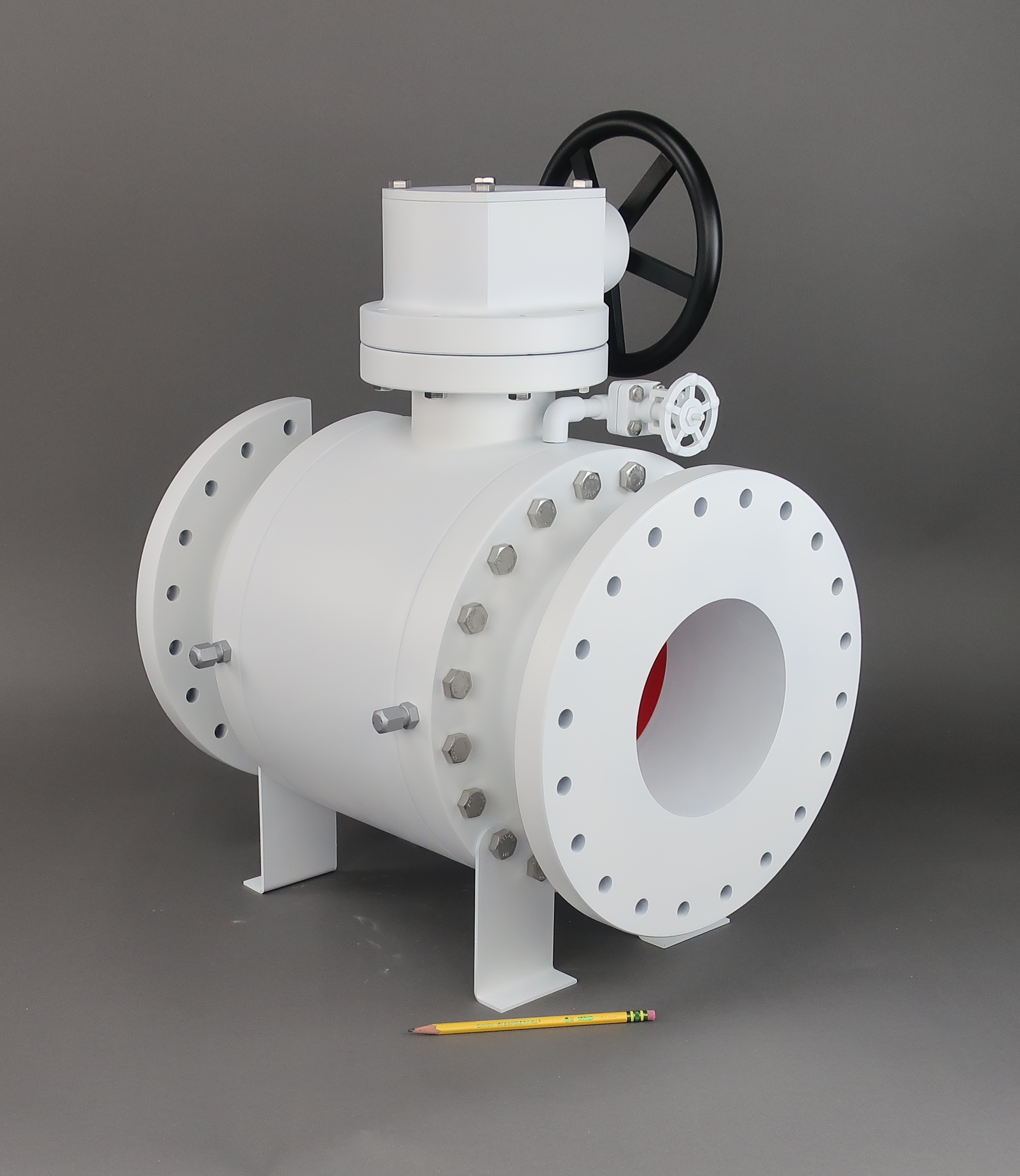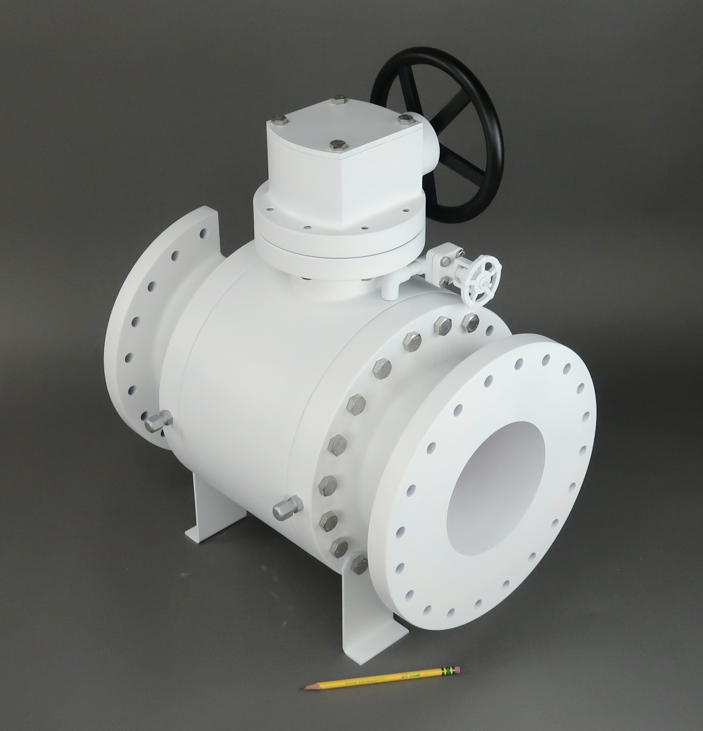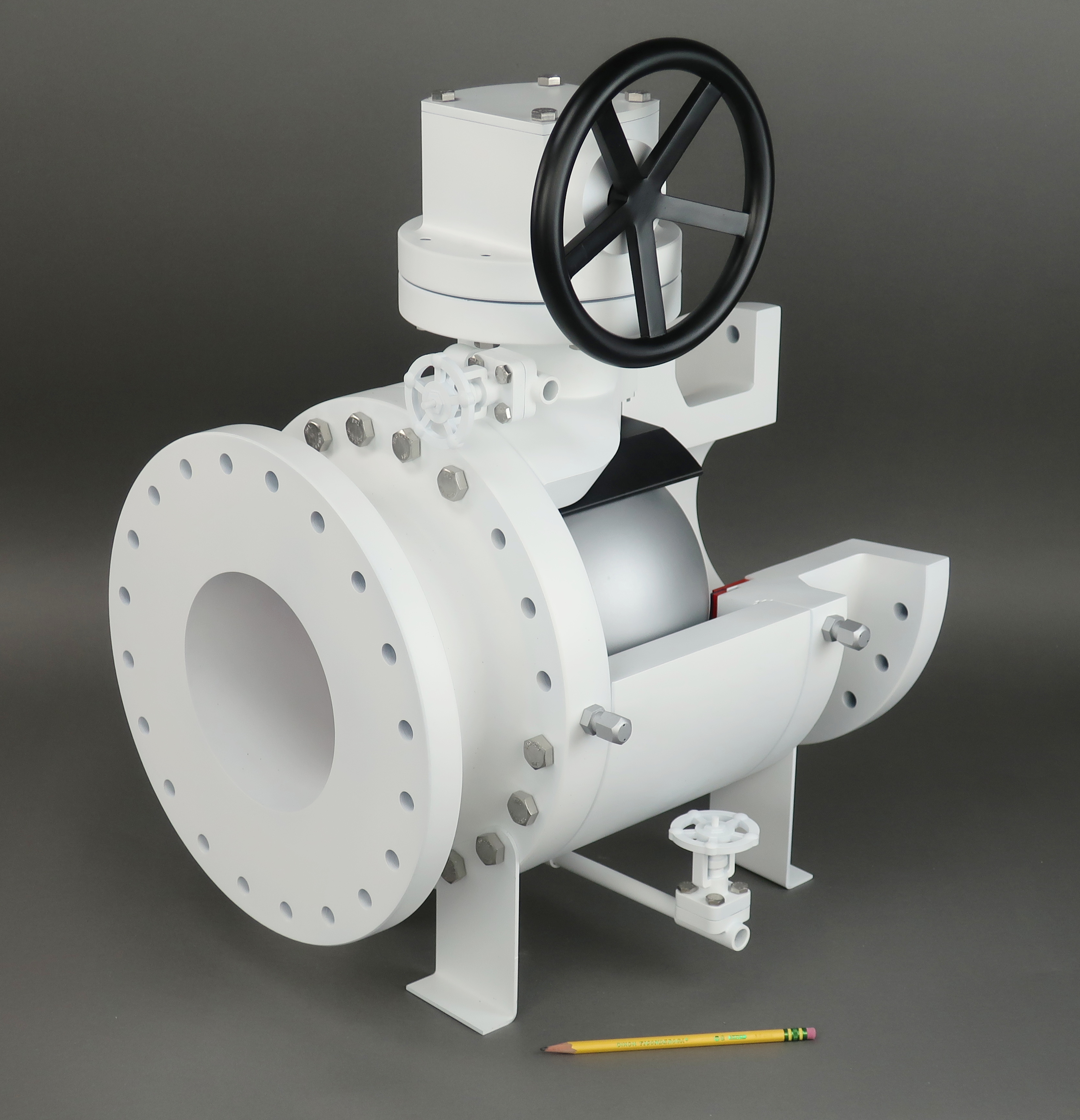 This 6" diameter trunnion ball valve model was designed for training personnel on the repair and maintenance of these valves. The ball rotates when the wheel is turned, all of the grease ports are represented and the seals are represented.